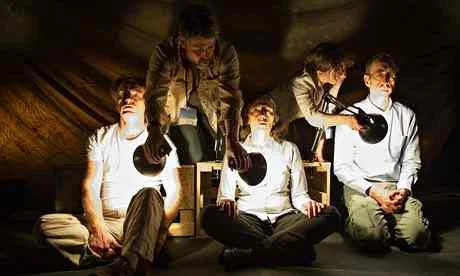 War Correspondant is a Song Theatre piece where 5 actor/singers take the stage and sing unacompanied. In this case the project was based around interviews with War Correspondants that had been in some incredible situations as journalists on the front line. The pieces of music were then written by taking the text from these interviews verbatim and structuring it around the 5 voices. Acommpanied by movement these pieces told of many angles of emotions and situations of these correspondants. From a sound perspective we created Soundscapes out of the original interview recordings, showing the differences and similarities between them, it was also a way of bridgeing these stories together was pieces of fluid music.